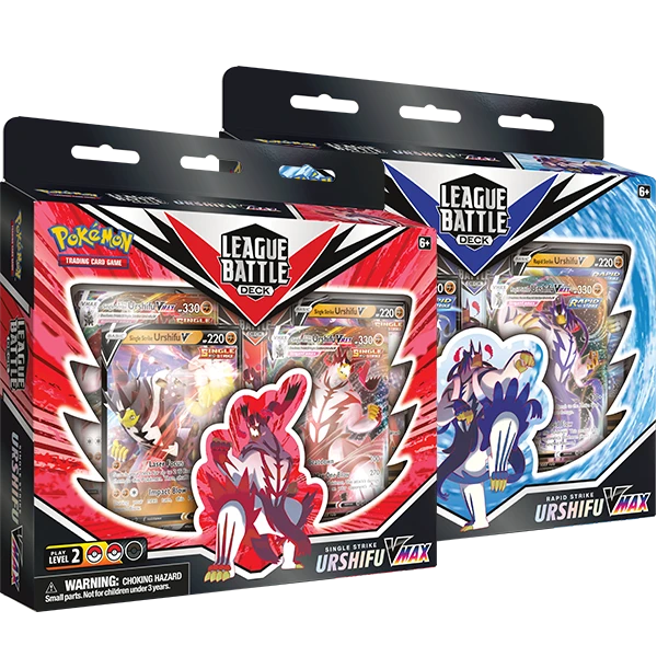 Single Strike Urshifu VMAX or Rapid Strike Urshifu VMAX is yours in a powerful, League-ready deck for skilled Trainers and Pokémon TCG players. With a slew of cards including premium foil cards, sought-after power cards, and a well-tuned set of Pokémon and Trainer cards, these League Battle Deck put together all the elements to support you in your next match!
