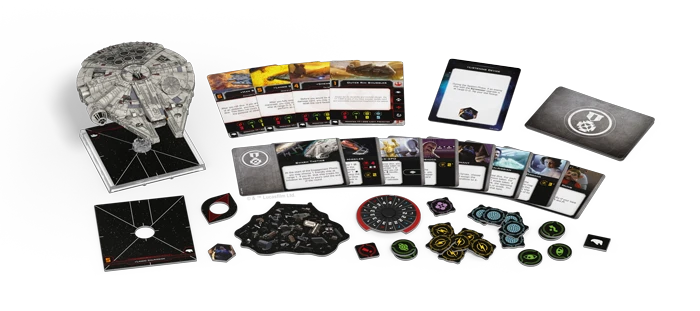 With the Millennium Falcon Expansion Pack you can fly this iconic ship into battle. Featuring a Modified YT-1300 Light Freighter ship miniature blasting off with a striking engine glow, this expansion also contains four YT-1300 ship cads identical to those found in the Rebel Alliance Conversion Kit and reprints of fourteen essential upgrade cards, inviting you to make your own personal modifications. Finally, two Quick Build Cards provide suggestions for combinations of pilots and upgrades, helping you get into the battle even sooner.